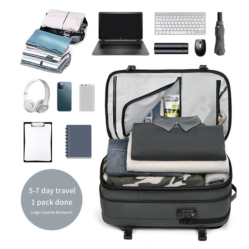 Viajar puede ser caótico, con la molestia de tener que gestionar varias maletas y mantener lo esencial organizado. Esta mochila resuelve estos problemas con elegancia, ofreciendo una solución elegante y versátil para todas tus necesidades de viaje.